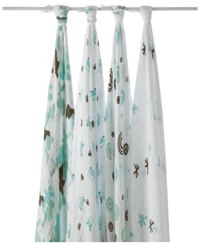 The aden + anais Boutique 100% Cotton Muslin Swaddle 4-Pack -- green size: one size Description