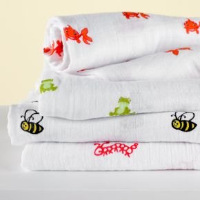 A set of four oversize swaddling blankets excellent for wrapping up child. Plus, the more you wash and dry them, the softer they get, due to a novel a hundred percent cotton muslin fabric. Imported.