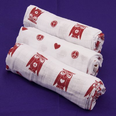 The Peace & Love Owls - 3 Pack, Organic Muslin Swaddling Blankets Description