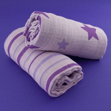 The Bambino Land Muslin Organic Blankets Purple Stars & Stripes - 2 Pack Description
